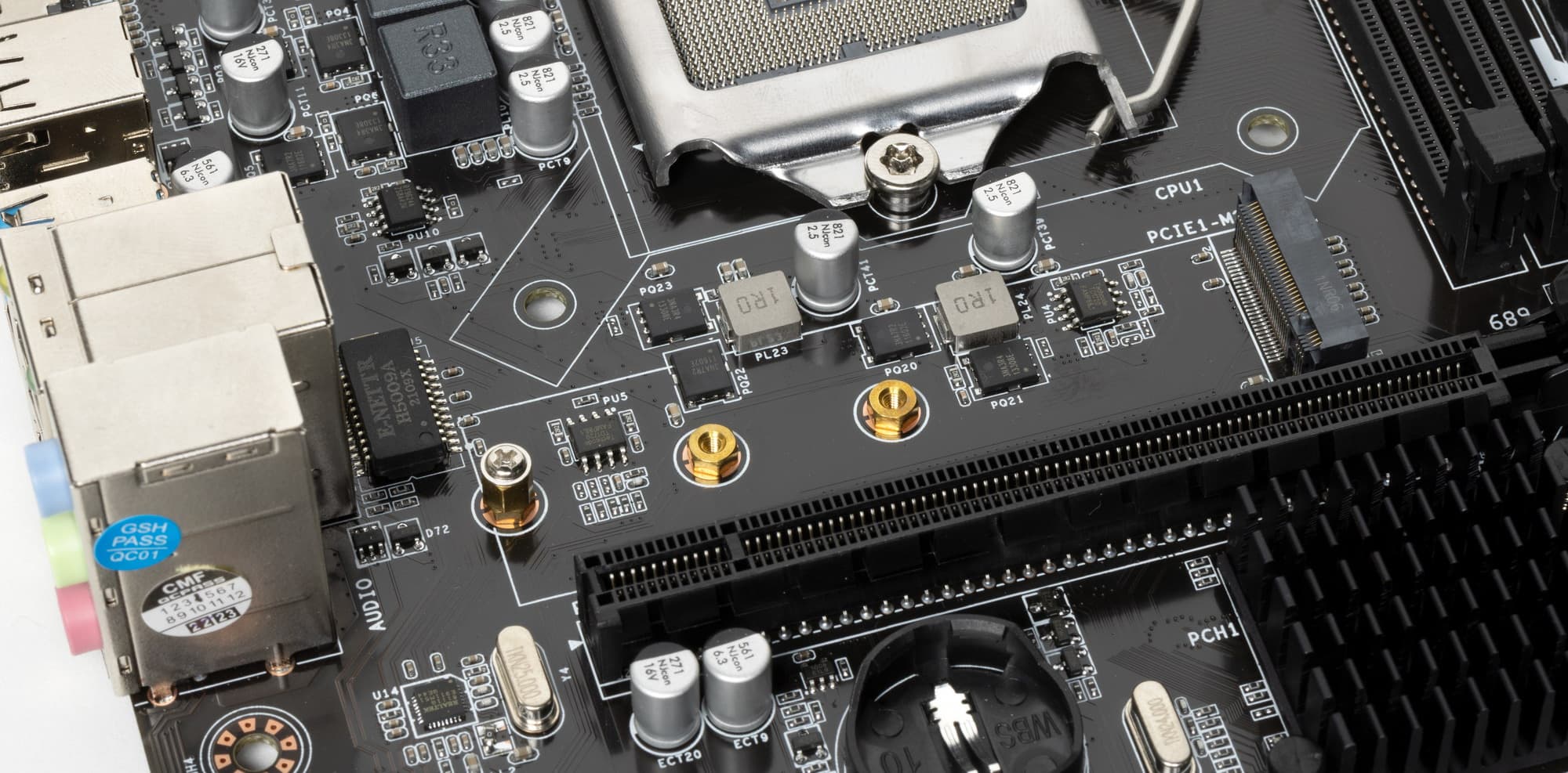 Аудиоподсистема весьма проста: нет ни операционных усилителей, ни ЦАП. В аудиоцепях платы применяются «аудиофильские» конденсаторы Nichicon Fine Gold.