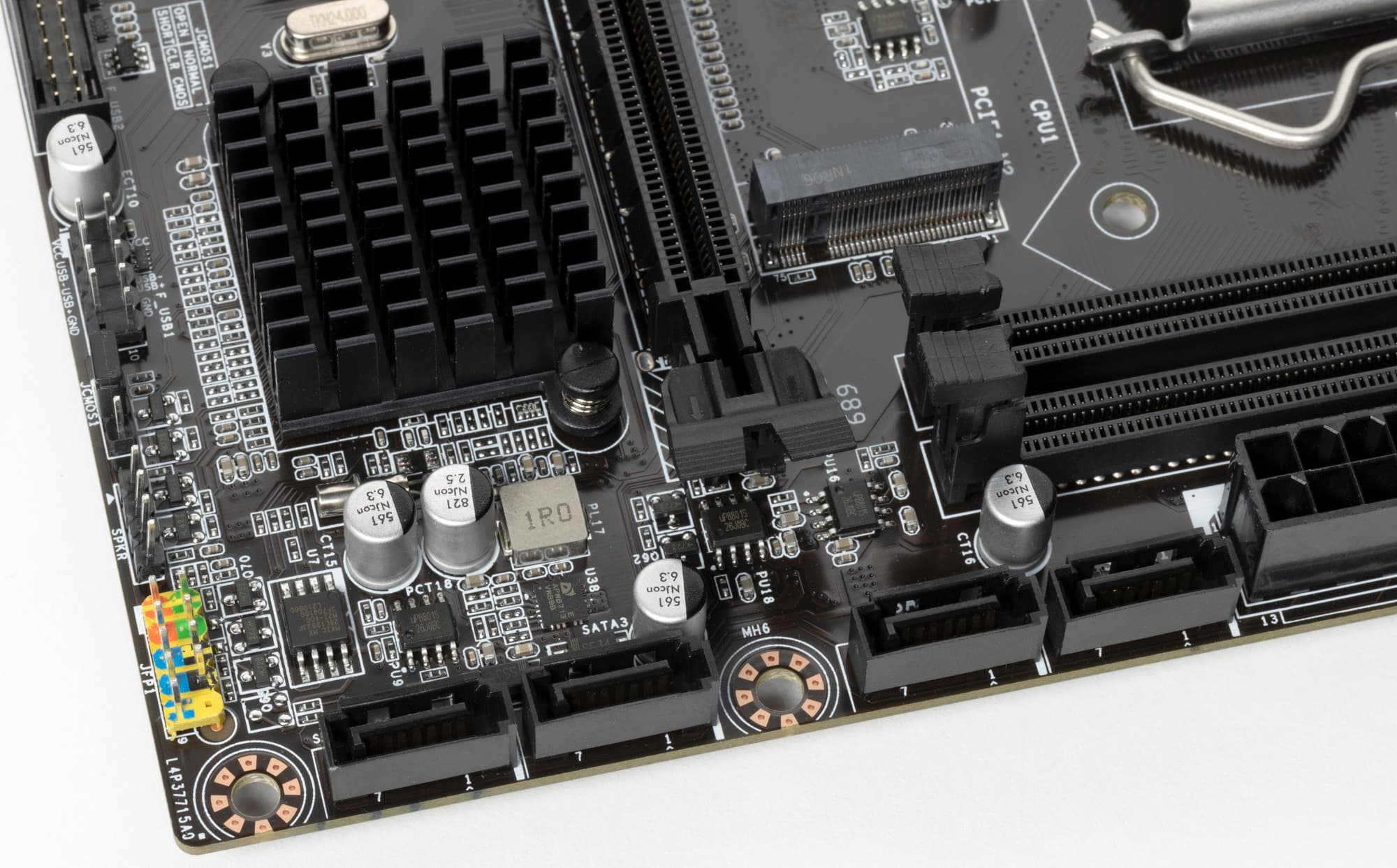 Весь блок VRM, а также M.2 слот не имеют охлаждения.