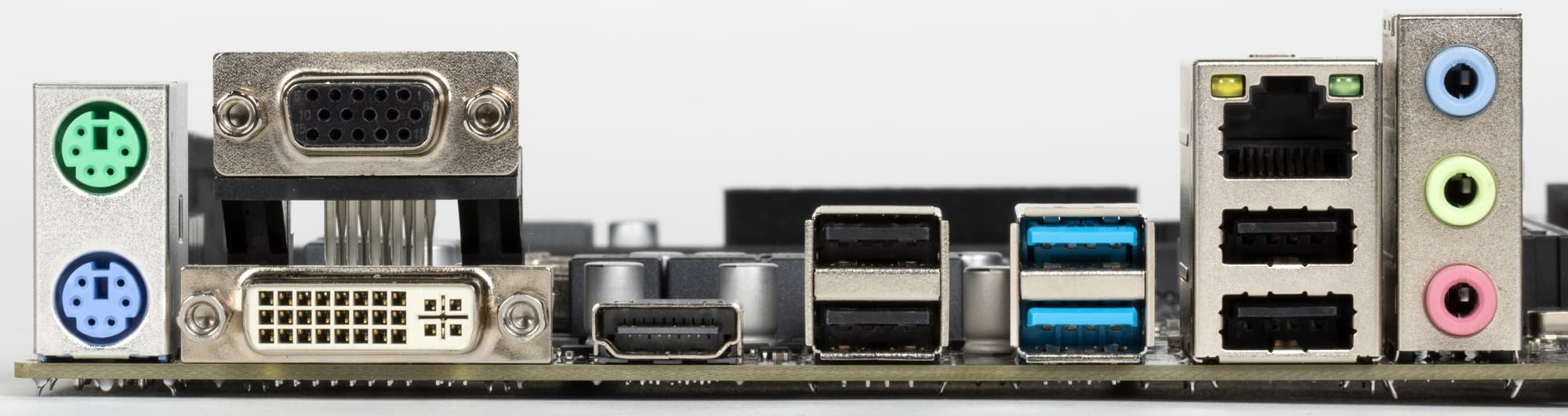 | Разъемы на задней панели | 2 × USB 3.2 Gen1 (Type-A) 4 × USB 2.0 (Type-A) 1 × RJ-45 3 аудиоразъема типа миниджек 1 разъем PS/2 для клавиатуры 1 разъем PS/2 для мыши 1 × HDMI 2.0b 1 × DVI-D 1 × d-Sub (VGA) |