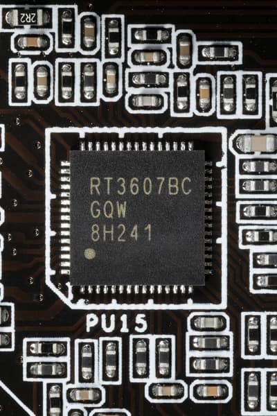 Управляет схемой питания шестифазный ШИМ-контроллер Richtek RT3607.