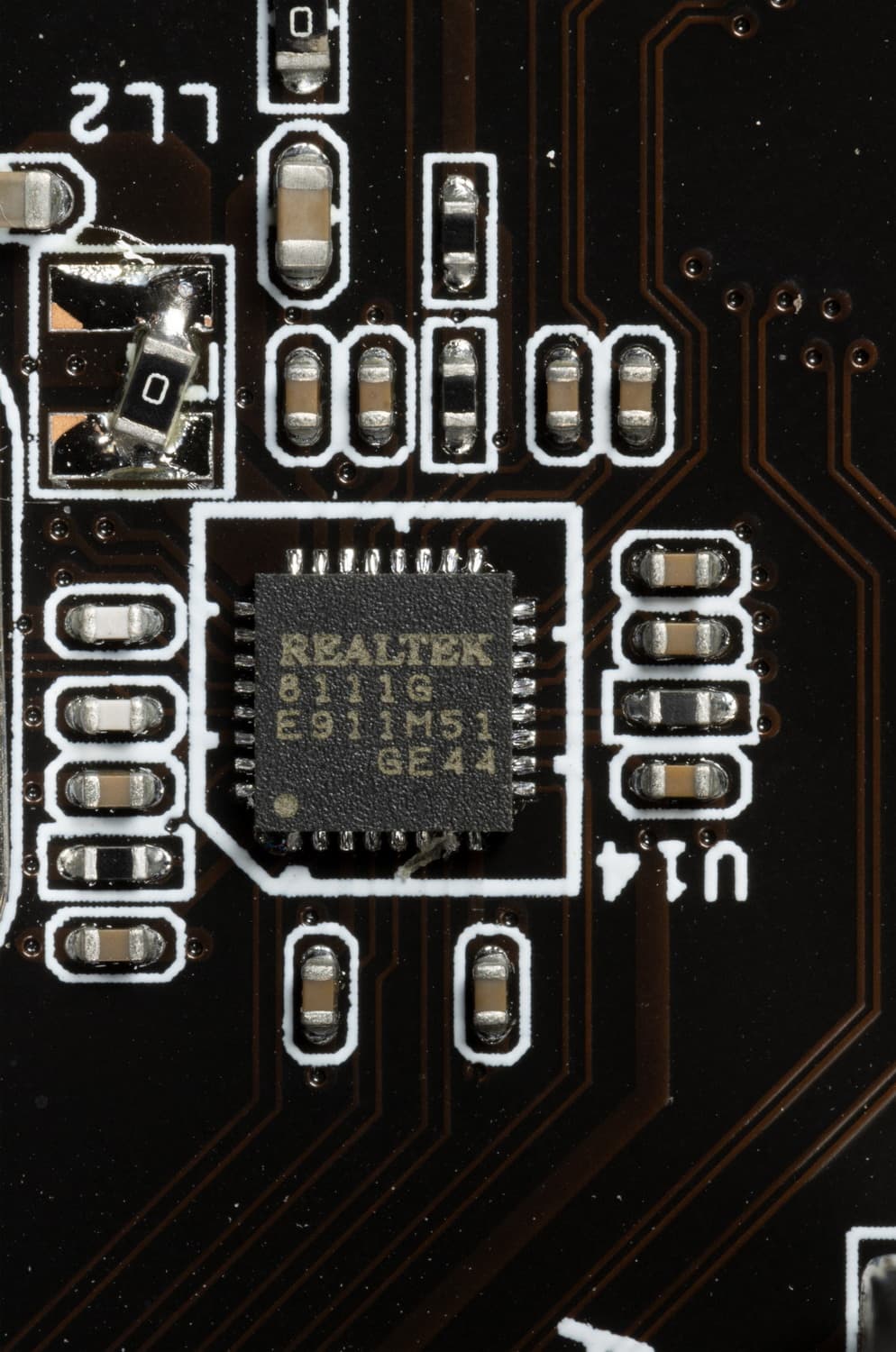 Материнская плата оснащена средствами очень скромно. Имеется Ethernet-контроллер Realtek RTL8111G, способный работать по стандарту 1,0 Гбит/с.