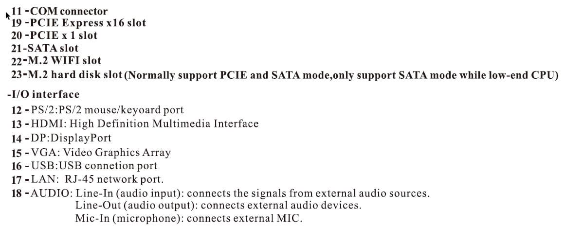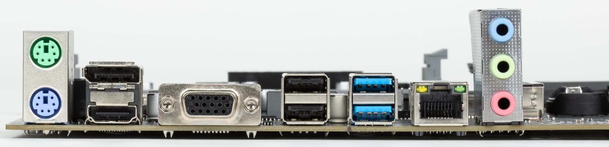 | Разъемы на задней панели | 2 × USB 3.2 Gen2 (Type-A) 2 × USB 2.0 (Type-A) 1 × RJ-45 3 аудиоразъема типа миниджек 1 разъем HDMI out 1 разъем d-Sub (VGA) out 1 разъем DP out 2 разъема PS/2 |