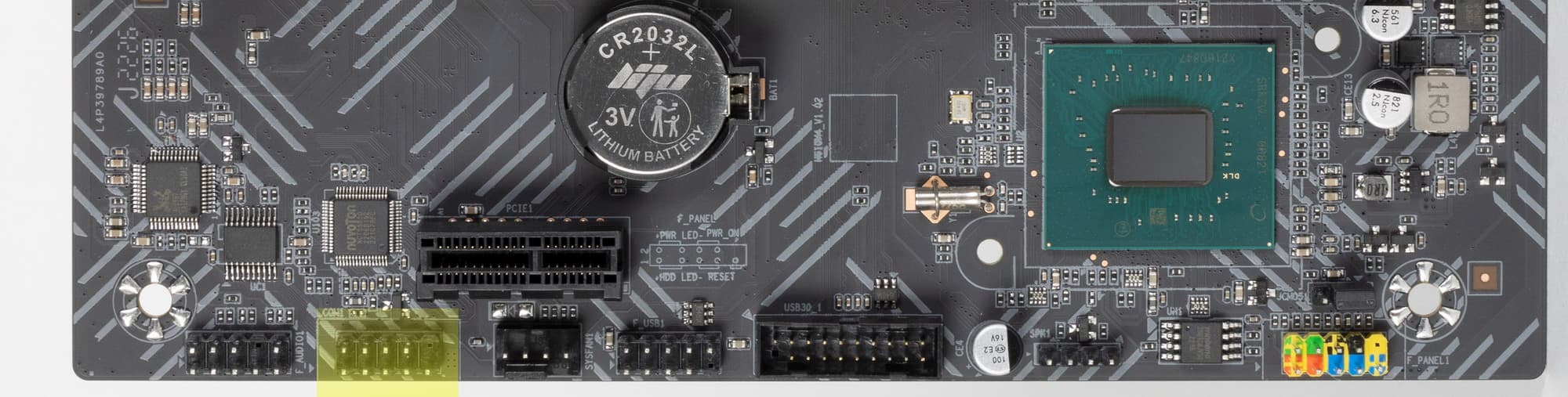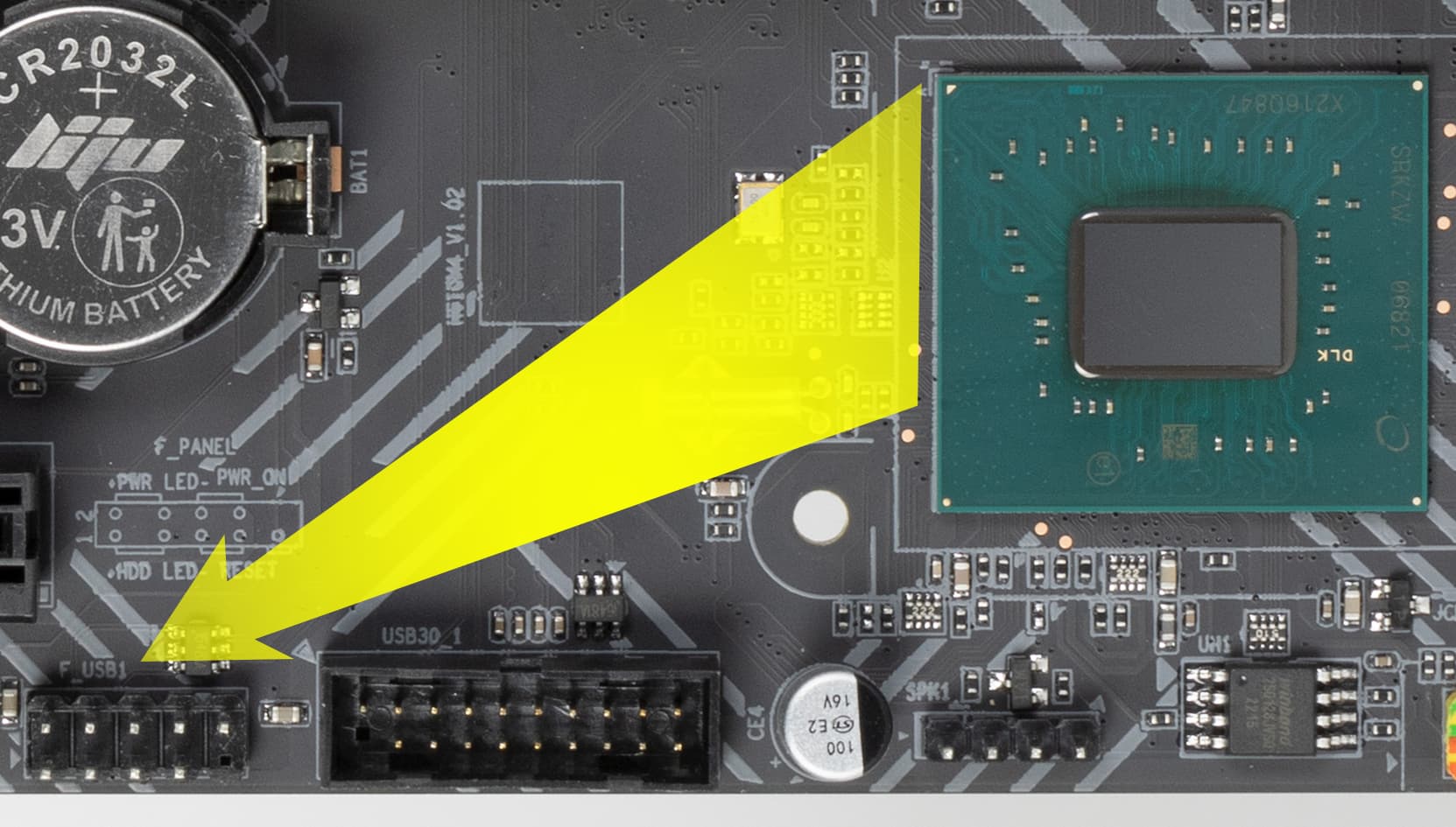- 2 порта USB 3.2 Gen1: реализованы через H610 и представлены внутренним разъемом на материнской плате на 2 порта;