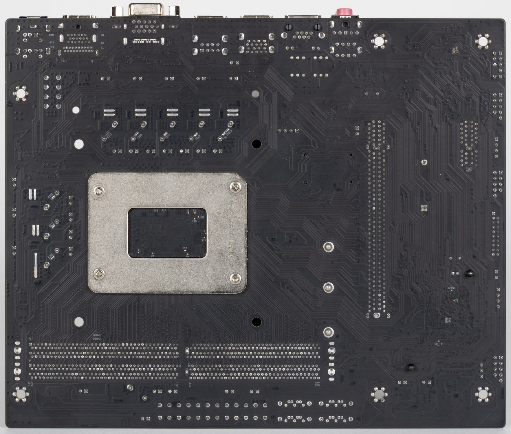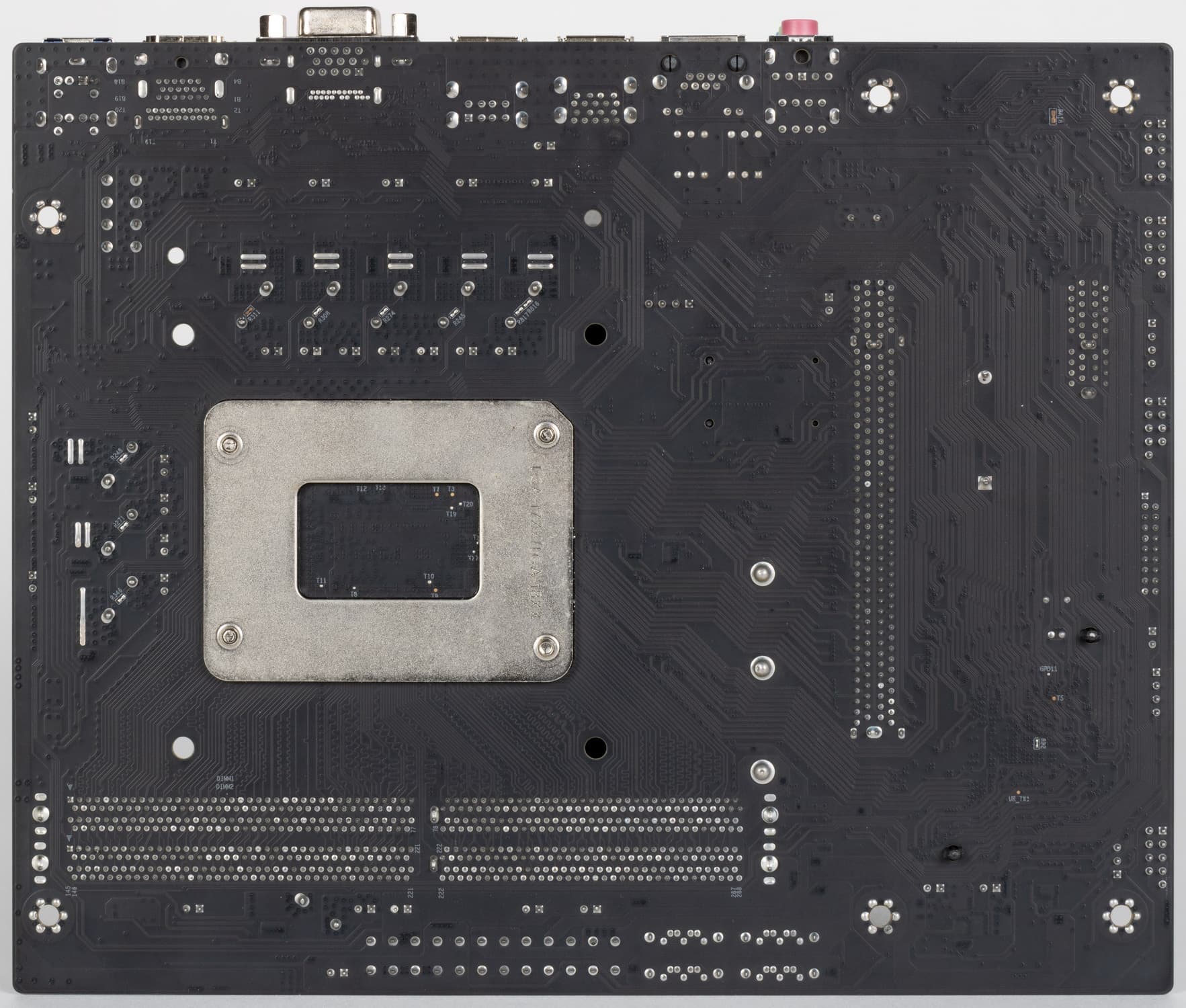 Оборотная сторона — практически пустая. Текстолит обработан хорошо: во всех точках пайки острые концы срезаны. «Заглушка» на заднюю панель с разъемами не установлена и прилагается отдельно в комплекте поставки.