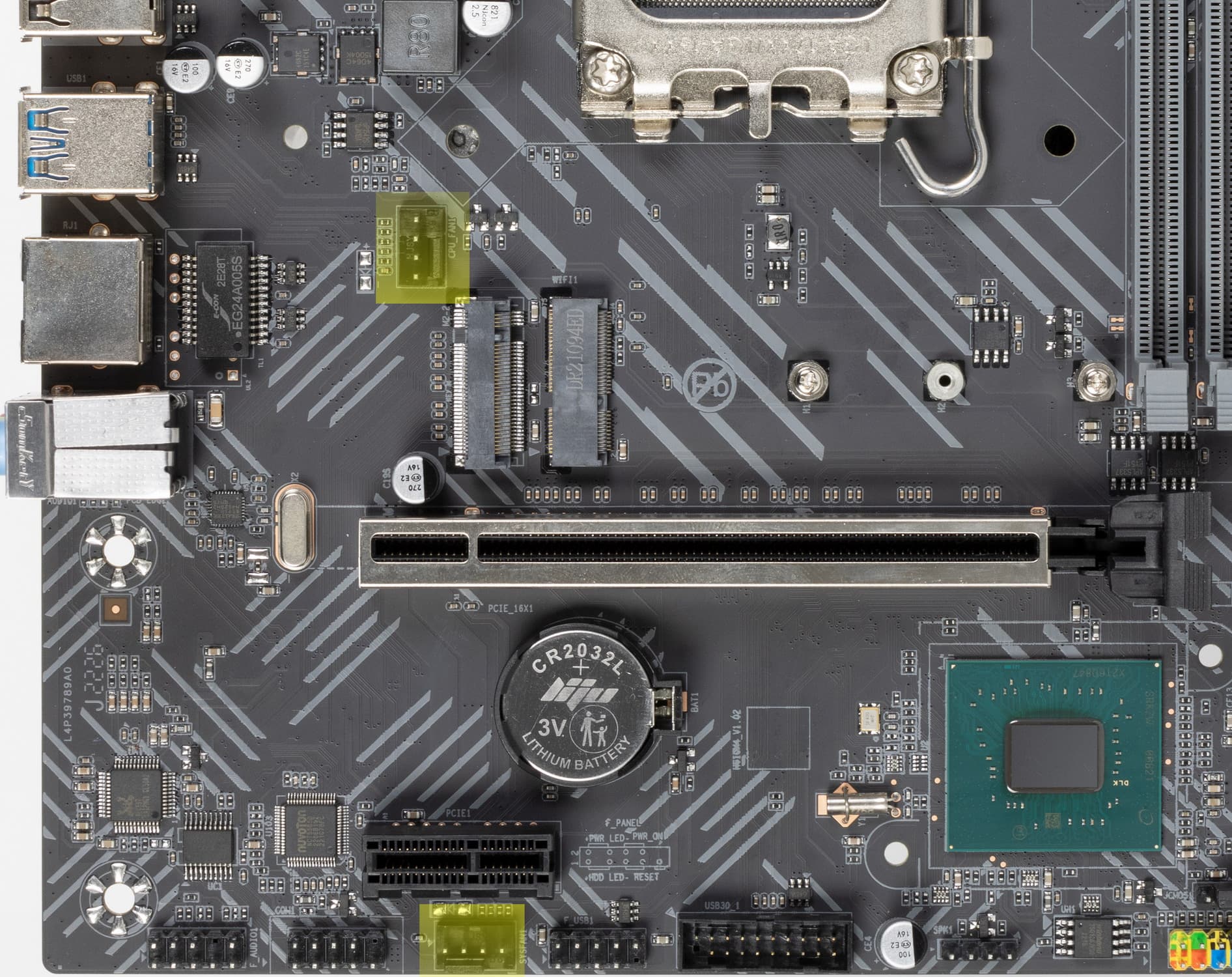 Теперь в целом про слоты PCIe. Всего на плате есть 2 слота: один PCIe x16 (для видеокарт или других устройств) и PCIe x1. Если про первый PCIe x16_1 я выше уже рассказал (он подключен к CPU), то PCIe x1 подключен к H610.