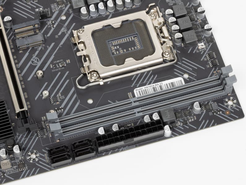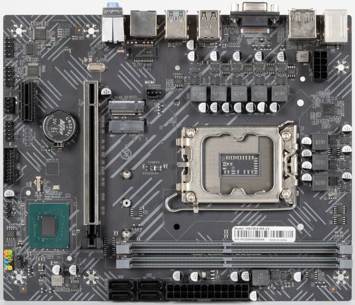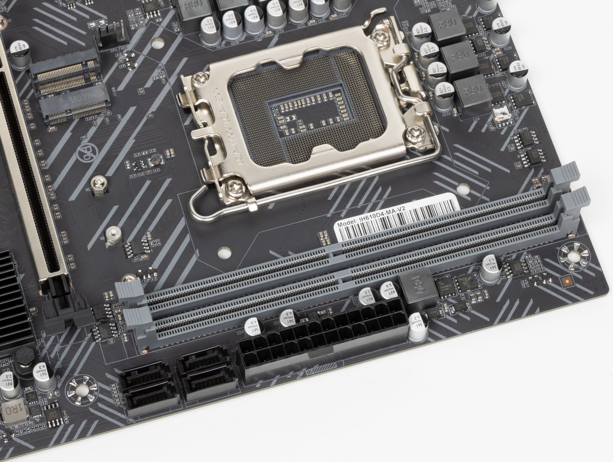 Форм-фактор Mini-ITX имеет размеры 170×170 мм, microATX до 244×244 мм, ATX до 305×244 мм, а E-ATX — до 305×330 мм. Материнская плата Afox IH610D4-MA-V2 выполнена в форм-факторе microATX, имеет размеры 234×204 мм, и на ней имеются 6 монтажных отверстий для установки в корпус.