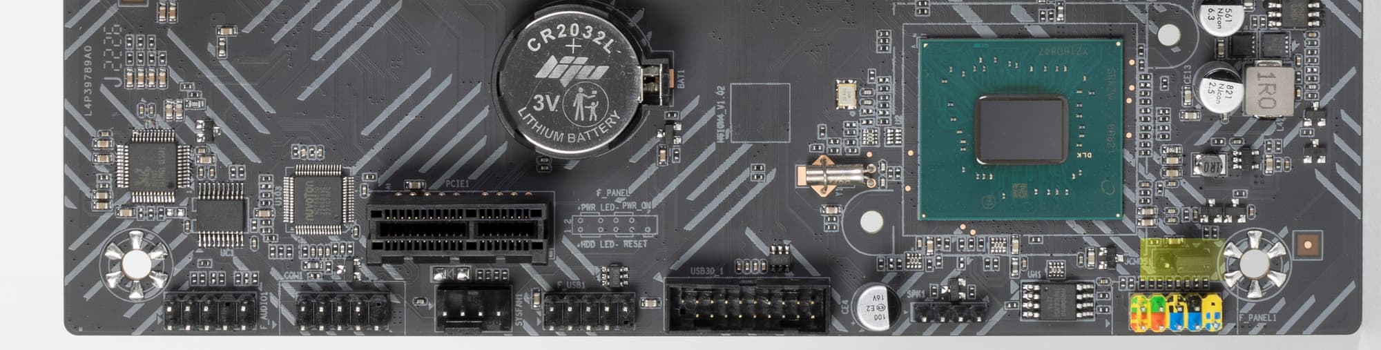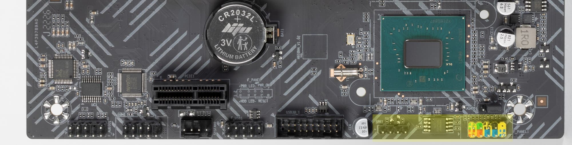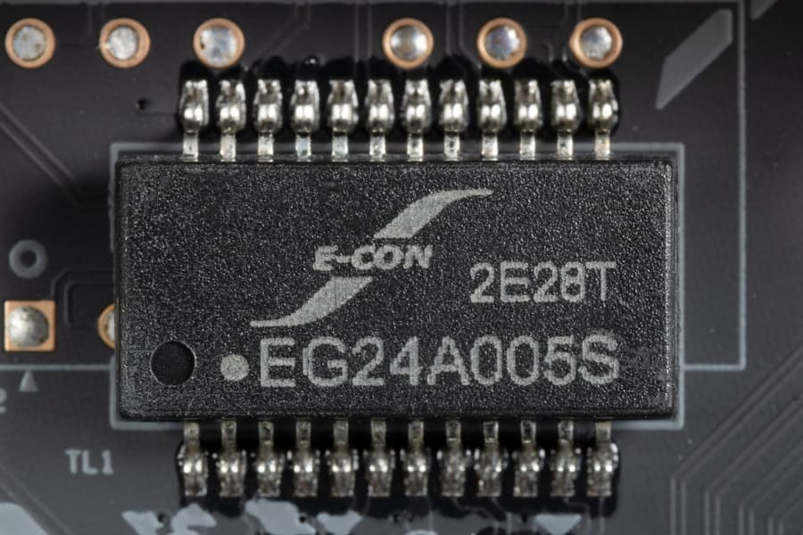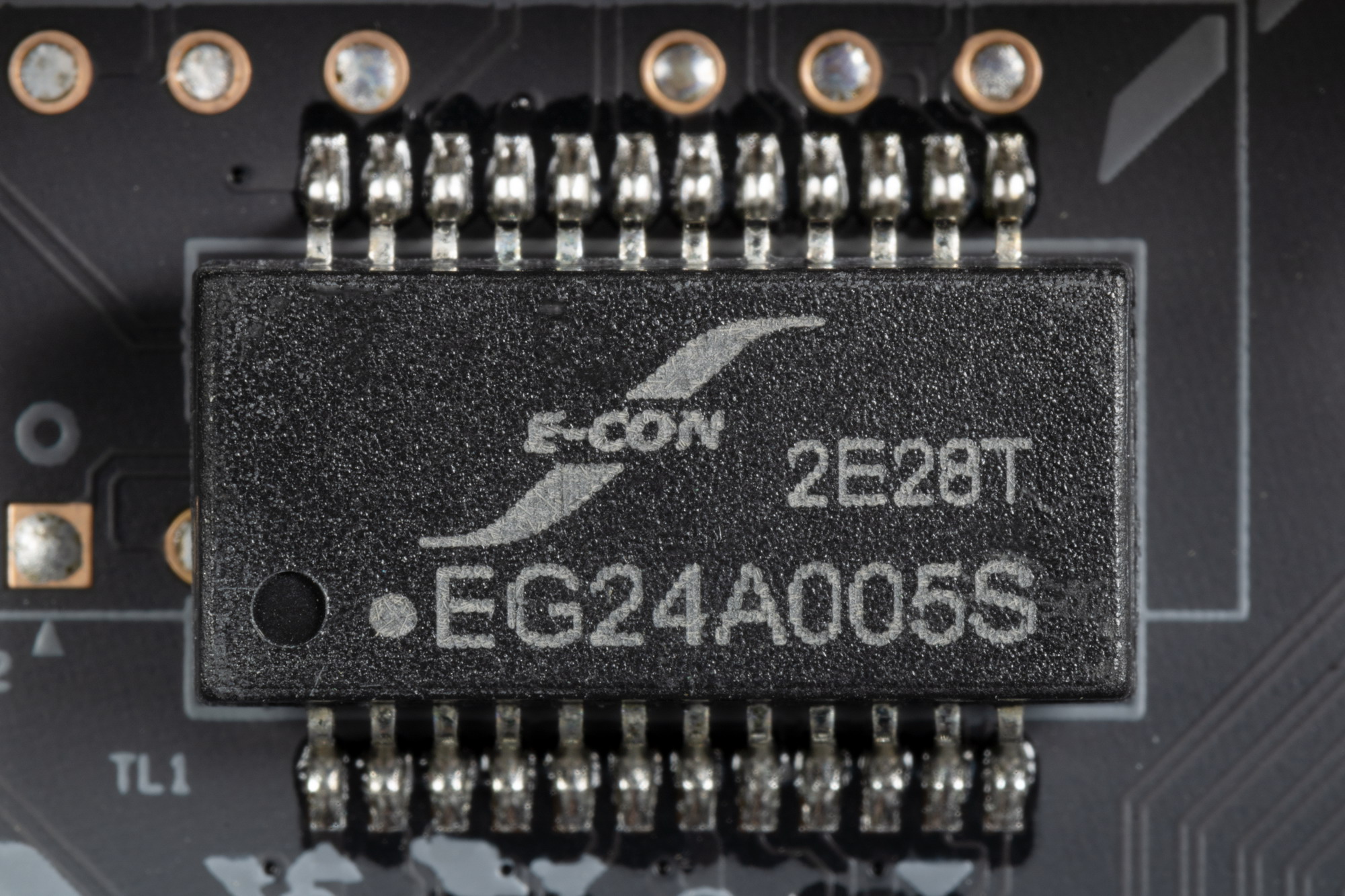 У платы 8 USB-портов, включая 2 USB 3.2 Gen2 и 2 USB 3.2 Gen1. Имеется «длинный» слот PCIe х16, получающий от процессора 16 линий PCIe 4.0. Также есть один слот PCIe x1. Для накопителей предлагается 1 слот M.2 (подключен к процессору линиями PCIe 4.0) и 4 порта SATA. Сетевые возможности скромны: один проводной контроллер 1 Гбит/с плюс слот для установки модуля беспроводной связи (приобретается отдельно). Подсветка у платы отсутствует, нет и разъемов для подключения внешних устройств подсветки.