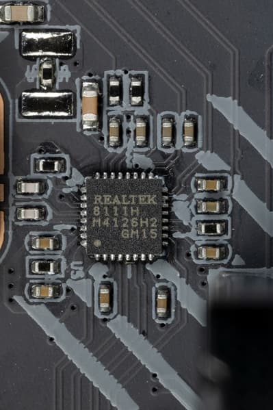Материнская плата оснащена средствами связи очень скромно. Имеется Ethernet-контроллер Realtek RTL8111H, способный работать по стандарту 1 Гбит/с.