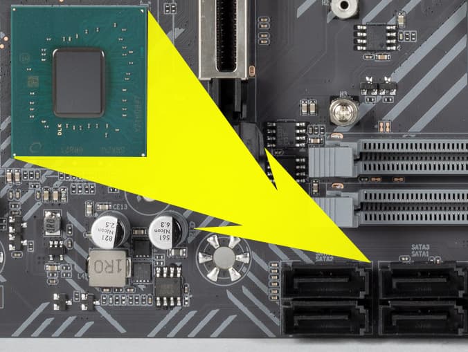 Кроме USB-портов, к которым мы подойдем позже, чипсет H610 обладает 8 PCIe линиями и 4 портами SATA. Считаем, сколько линий уходит на поддержку (связь) с тем или иным элементом (надо учитывать, что все линии версии PCIe 3.0):