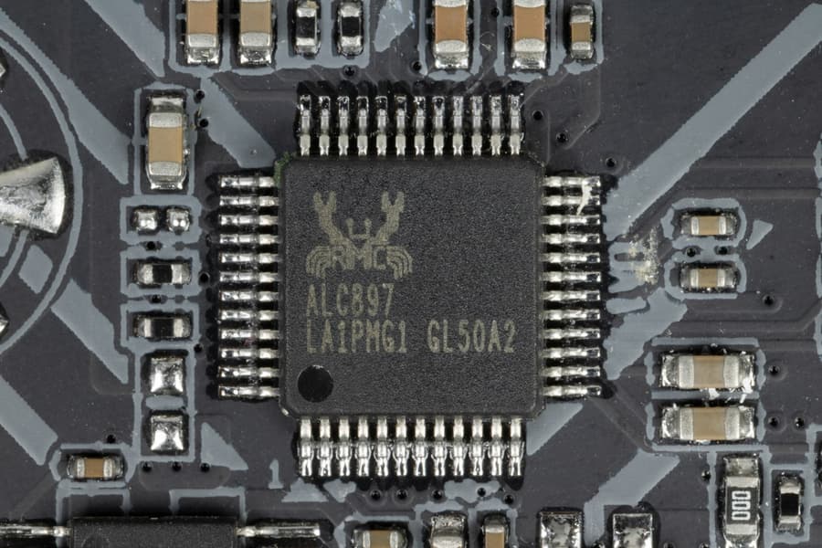 Мы знаем, что почти во всех современных материнских платах звуковым кодеком является продукт от Realtek, обеспечивающий вывод звука по схемам до 7.1, в последнее время это стал ALC4080 с характеристиками 32 бит / 384 кГц. Однако в данном случае применен очень старый Realtek ALC897 и схема понижена до 5.1.