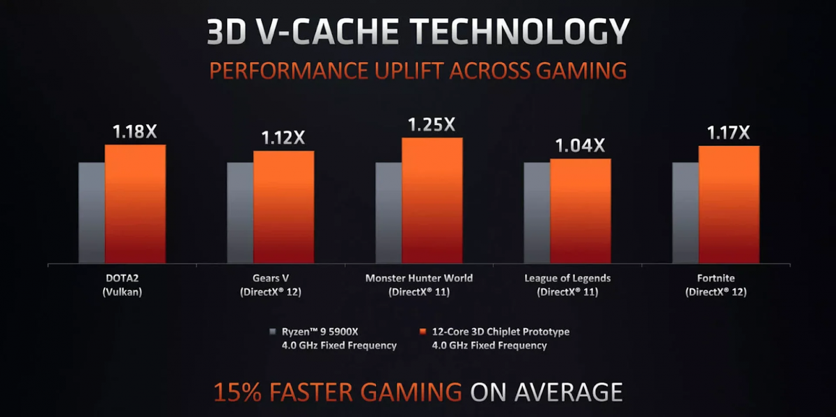 Большой общий объем L3-кэша в 96 МБ у всех моделей Ryzen 5000X3D, позволяет держать все критически важные данные в быстрой кэш-памяти, не тратя время на обращение к ОЗУ, и тут больше важна даже не пропускная способность, а скорость доступа в миллисекундах, которая у кэша в разы ниже. Поэтому в некоторых играх разница между обычными процессорами и их X3D аналогами может достигать 20-25%, хотя не все игры получают столь большое преимущество. Стрелялки и симуляторы обычно хорошо ускоряются, а вот стратегии не всегда любят большой кэш, им важно и количество ядер. Поэтому в играх серий Total War, Civilization, Anno и других аналогичных, ускорения от добавления X3D-кэша или нет или оно не такое большое. А порой оно вовсе нивелируется сниженной тактовой частотой таких игровых процессоров — например, в стратегиях куда важнее количество ядер.