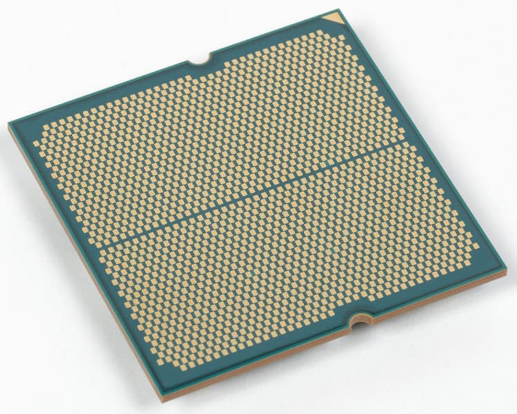 Напомним, что все процессоры серии Ryzen 7000 для настольных ПК имеют многокристальную (чиплетную) компоновку, как и предыдущие семейства. Основные вычислительные ядра расположены в кристаллах CCD (CPU complex die), а логика ввода-вывода вынесена в отдельный кристалл IOD (I/O die). Основные кристаллы CCD производятся при помощи новейшего техпроцесса TSMC N5 (5 нм EUV), а в производстве кристалла IOD используется TSMC N6 (6 нм). Основная идея такого разделения в том, что больше всего выигрывает от перехода на новейший техпроцесс логика вычислительных ядер, а вспомогательную можно сделать при помощи более старого и дешевого техпроцесса. Многокристальный модуль процессора содержит один IOD-кристалл и пару 8-ядерных CCD в случае топовых моделей Ryzen 9 7950X и 7900X и один CCD в случае Ryzen 7 и Ryzen 5 — вот как сегодня.