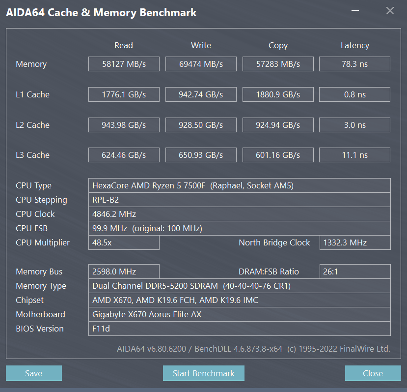 | Ryzen 5 7500F | 58127 | 69474 | 57283 |