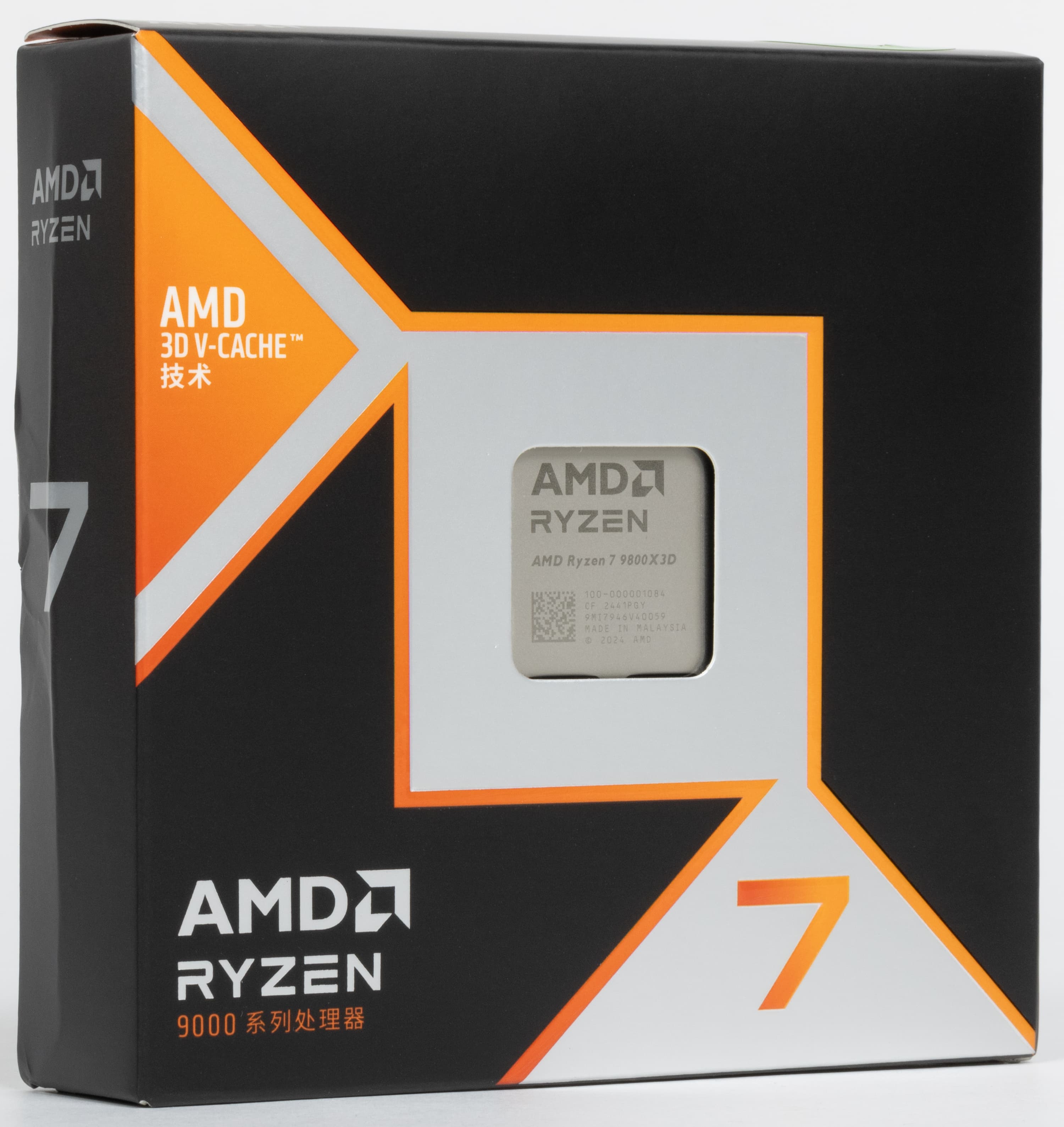 Процессор Ryzen 7 9800X3D поставляется в небольшой коробке без комплектной системы охлаждения, которая выглядит аналогично упаковке решений поколения Ryzen 7000 и других процессоров Ryzen 9000, из внешних отличий там разве что есть указание на принадлежность процессора к 3D V-Cache технологии. Сам чип выглядит почти точно как более ранние процессоры для Socket AM5 — есть лишь мелкие изменения по цвету подложки и компонентам на печатной плате.