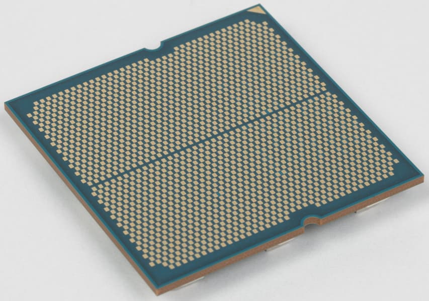 Выглядит это очень просто — взяли и просто поменяли кристаллы местами, но для этого потребовались важные изменения, ведь с точки зрения дополнительных соединений как раз предыдущее решение было оптимальным — вычислительные ядра соединяются с дополнительным кэшем с одной стороны, и с кристаллом ввода-вывода (через текстолитовую основу) с другой. Именно CCD-кристаллу выгоднее быть посередине в идеальном мире без необходимости его охлаждения, а его размещение дальше от IOD-кристалла через дополнительную SRAM делает необходимым создание сквозных соединений через кристалл с кэшем. Так что потребовалось полностью переделать L3D-кристалл, увеличив его габариты и разместив специальные дополнительные проводники — новый кристалл с кэшем по габаритам теперь равен кристаллу CCD, что дополнительно улучшает прочность конструкции, ведь предыдущий был меньше и требовал дополнительного усиления. Объем кэш-памяти при этом остался прежним — 64 МБ, и работает он точно как в предыдущих X3D — увеличивая общий объем L3-кэша для восьмиядерного процессора до 96 МБ.