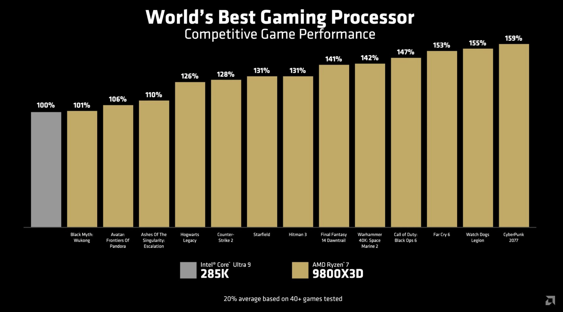 Перед практическим тестированием нам осталось поговорить разве что об оценках производительности самой AMD. Они не без причин считают свой новый CPU лучшим в мире игровым процессором, о чем гордо заявляют: