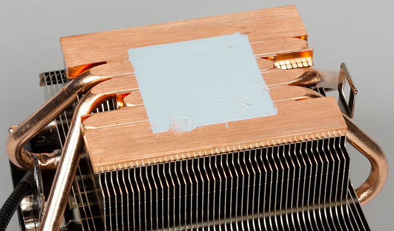 Термоинтерфейс у этого кулера на заводе нанесен тонким слоем на подошву.