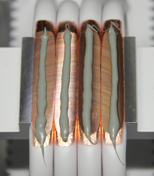 Видно, что термопаста распределилась тонким слоем по участку большой площади в центре крышки процессора, а ее избыток выдавился по краям. В центральных областях тепловых трубок есть выраженные пятна плотного контакта. Отметим, что крышка данного процессора не идеально плоская, а слегка выпуклая.
