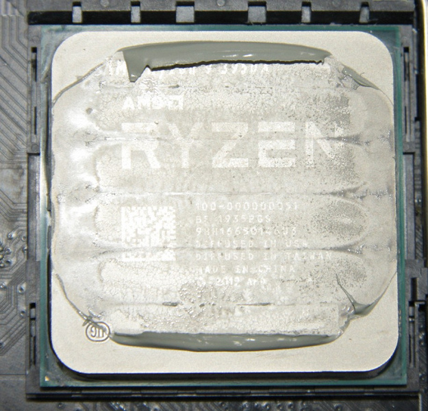 Забегая вперед, продемонстрируем распределение термопасты после завершения тестов. На процессоре Intel Core i9-7980XE: