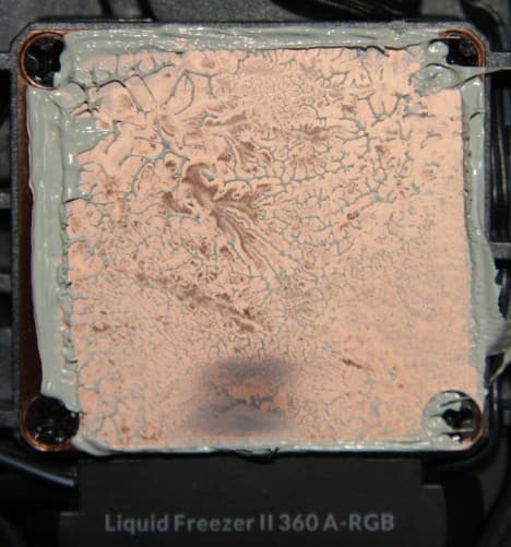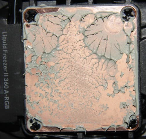Забегая вперед, продемонстрируем распределение термопасты после завершения всех тестов. На процессоре Intel Core i9-7980XE: