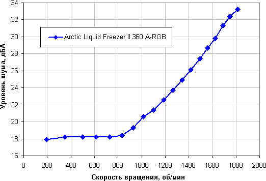 Уровень шума этой системы охлаждения меняется в не очень широком диапазоне. Зависит, конечно, от индивидуальных особенностей и других факторов, но где-то от 40 дБА и выше шум, с нашей точки зрения, очень высокий для настольной системы; от 35 до 40 дБА уровень шума относится к разряду терпимых; ниже 35 дБА шум от системы охлаждения не будет сильно выделяться на фоне типичных небесшумных компонентов ПК — корпусных вентиляторов, вентиляторов на блоке питания и на видеокарте, а также жестких дисков; а где-то ниже 25 дБА кулер можно назвать условно бесшумным. В данном случае систему можно считать тихой. Фоновый уровень был равен 16,1 дБА (условное значение, которое показывает шумомер).