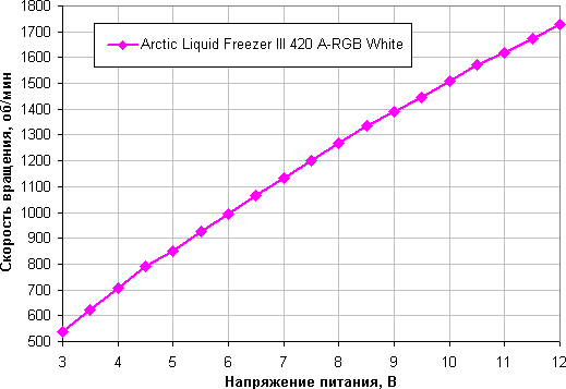 Скорость вращения помпы и вентилятора на ней также можно регулировать с помощью ШИМ и напряжения питания. Приведем соответствующие графики.
