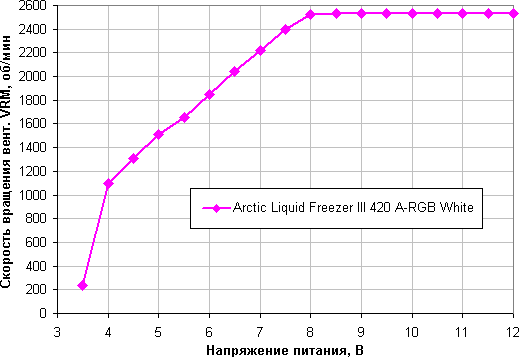 Регулировка с помощью напряжения позволяет получить устойчивое вращение в чуть менее широком диапазоне. Вентиляторы останавливаются при снижении напряжения до 2,8 В и запускаются от 3,5 — 3,9 В. Вентиляторы допустимо подключать к источнику с напряжением 5 В.