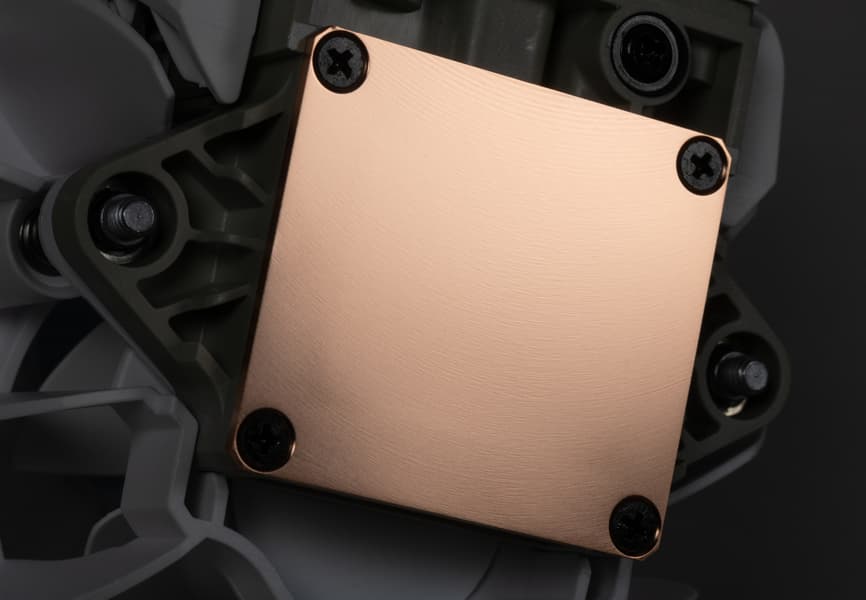 Особенностью данной СЖО является использование специальной прижимной рамки процессора, которая устанавливается вместо штатной. Эта рамка позволяет избежать деформации печатной платы и самого процессора, что снижает вероятность выхода со временем из строя того или другого. При этом помпа прикручивается двумя винтами в резьбовые отверстия через пружинную пластину с центральным прижимом. Это упрощает установку помпы и практически исключает вероятность перекоса теплосъемника относительно крышки процессора.