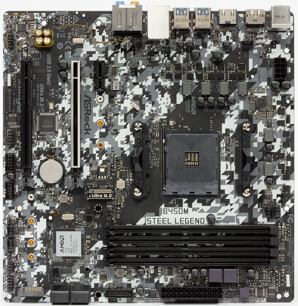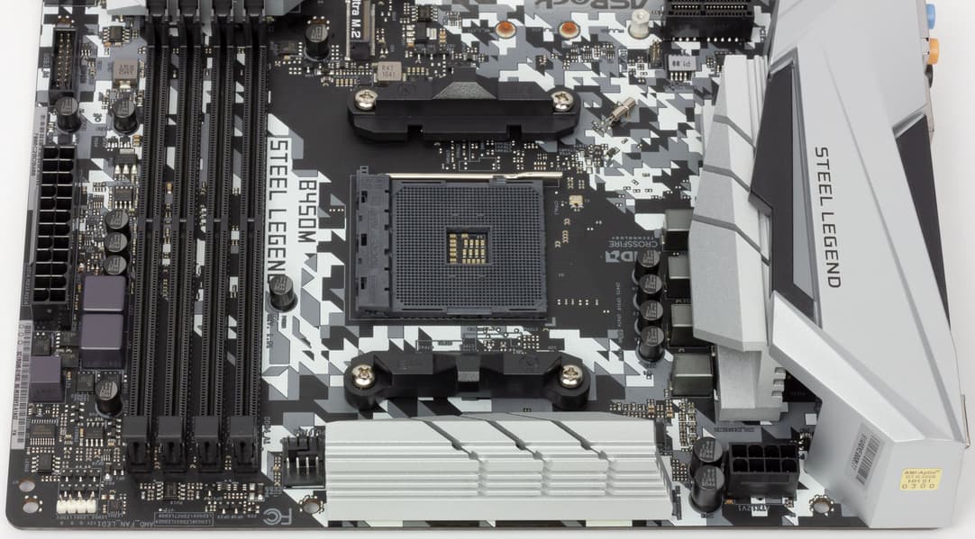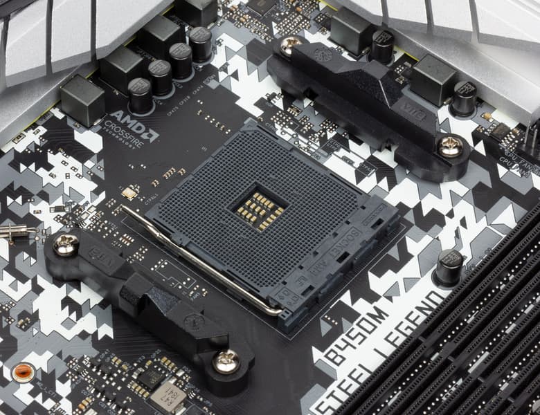 ASRock B450M Steel Legend поддерживает процессоры AMD Ryzen 1-го и 2-го поколений, выполненные под разъем (сокет) AM4. Конечно, имеется и поддержка новых Athlon GE.