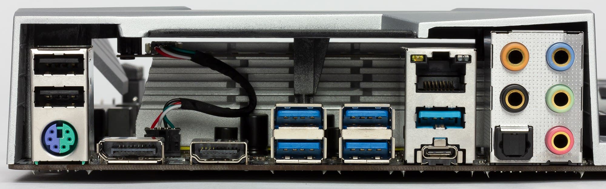 | Разъемы на задней панели | 4 × USB 3.1 Gen1 (Type-A) 2 × USB 2.0 (Type-A) 1 × USB 3.1 Gen2 (Type-A) 1 × USB 3.1 Gen2 (Type-С) 1 × RJ-45 1 × PS/2 5 аудиоразъемов типа миниджек 1 × аудиоразъем SP/DIF 1 × HDMI 2.0 1 × DisplayPort 1.2 |
