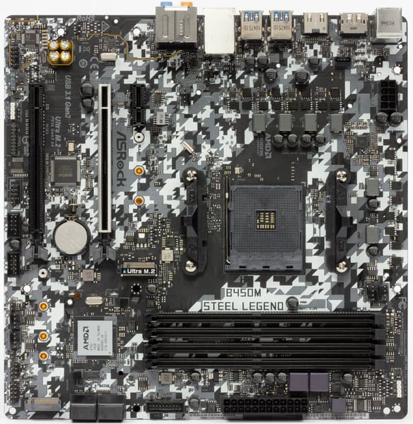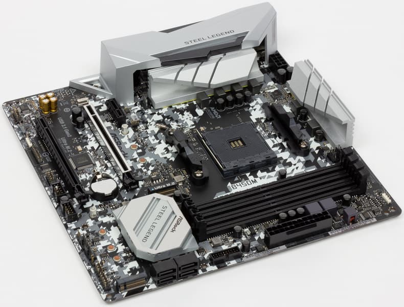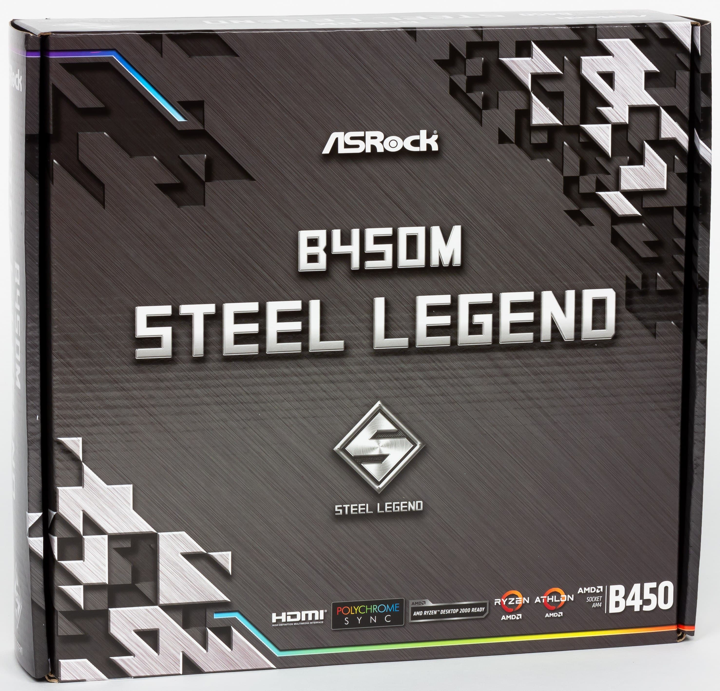 Итак, ASRock B450M Steel Legend — материнская плата, основанная на чипсете AMD B450 для процессоров AMD Ryzen 1-го и 2-го поколений, включая Ryzen со встроенной графикой Vega 8/11. Плата относится к бюджетному сегменту, поэтому может быть интересна широкому кругу читателей, так как она поддерживает самые производительные на сегодня процессоры AMD.