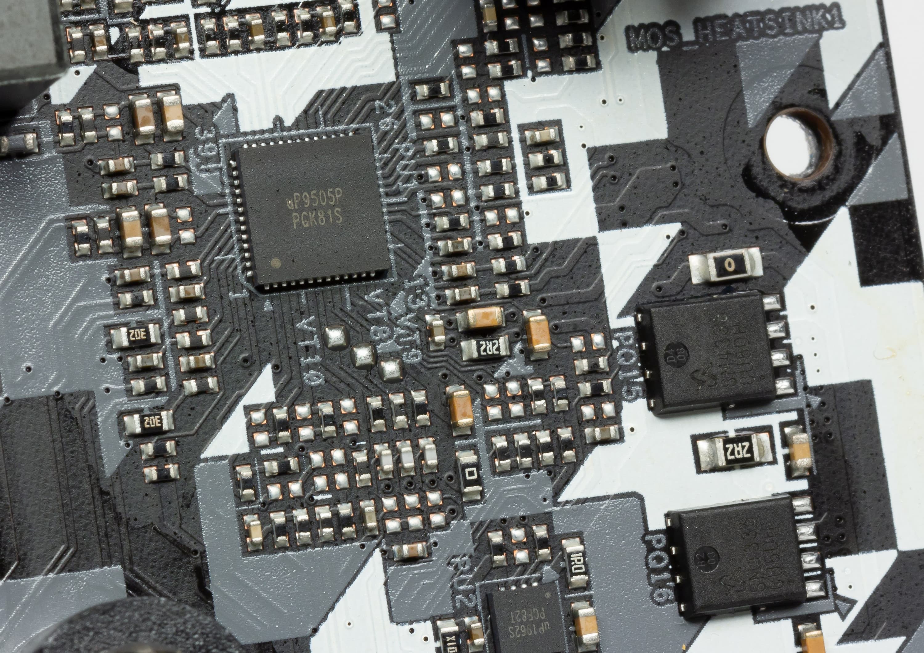 В каждом канале используются MOSFET-транзисторы SM4336NSKP и SM4337NSKP компании Sinopower. Катушки индуктивности супер-ферритовые, каждая держит до 60 А (согласно спецификациям).