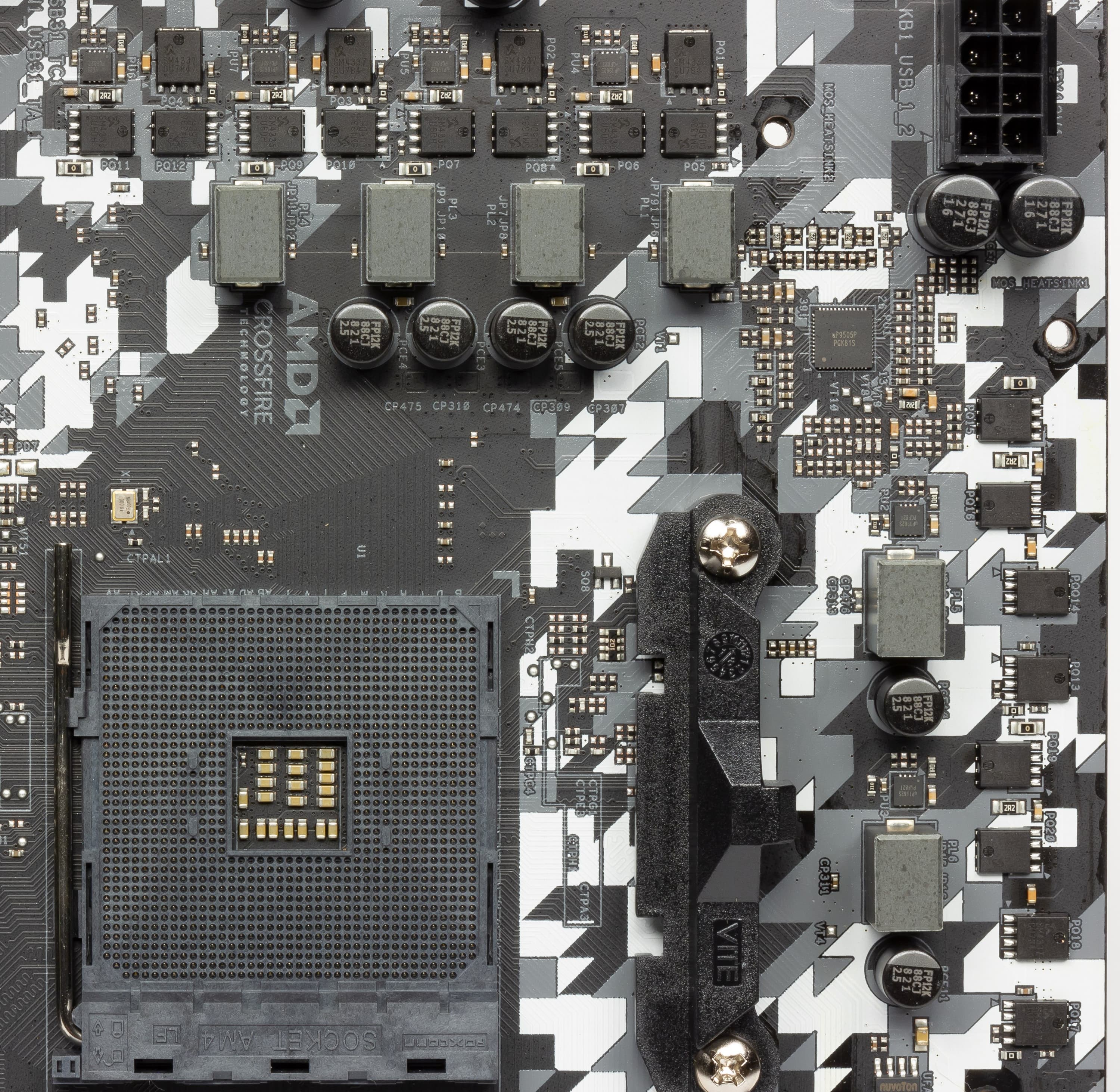 Чипсет имеет маленький прямоугольный радиатор. Для охлаждения B450 этого вполне достаточно.