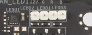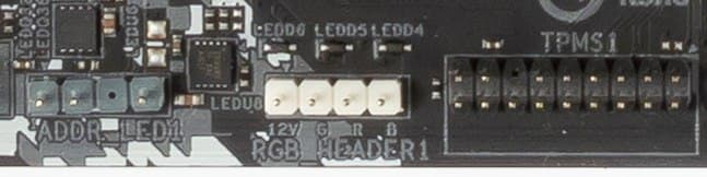 Несмотря на бюджетность материнской платы, она хорошо укомплектована набором разъемов для подключения светодиодной неадресуемой ленты RGB 12 В и адресуемой ARGB 5 B.