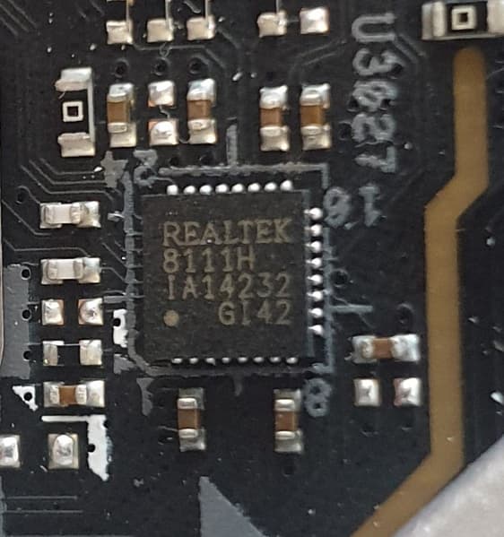 На плате распаян сетевой контроллер Realtek 8111H, его разъем RJ-45 тоже имеется на задней панели. Контроллер подключен к чипсету одной линией PCI-E.