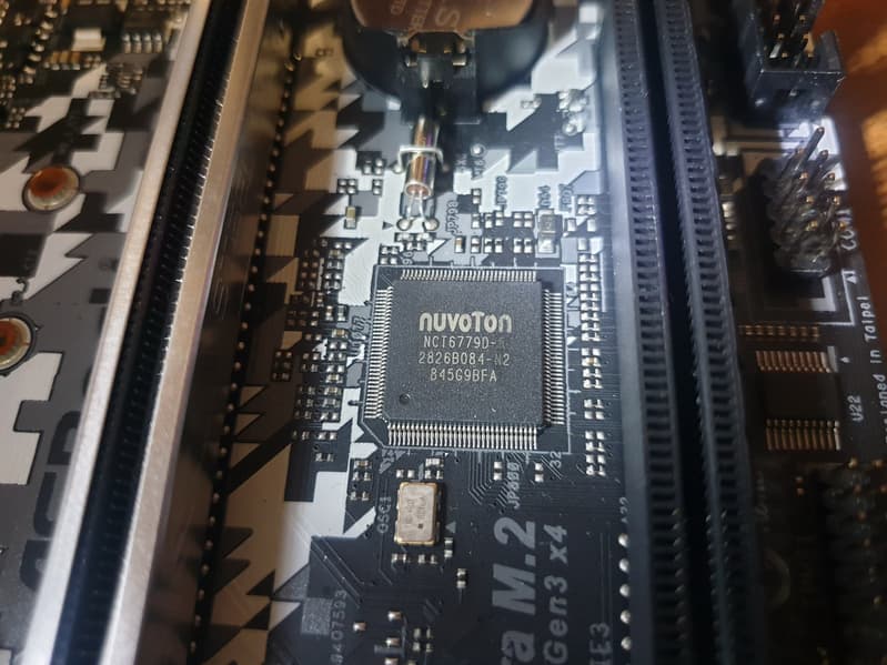 Напоследок — про разъемы для подключения вентиляторов, их на плате 5 штук. Мониторинг этих разъемов, а также работу порта PS/2 обеспечивает I/O-контроллер Nuvoton, расположенный между слотами PCI-E x16.
