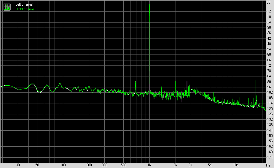 Для тестирования выходного звукового тракта, предназначенного для подключения наушников или внешней акустики, мы использовали внешнюю звуковую карту Creative E-MU 0202 USB в сочетании с утилитой RightMark Audio Analyzer 6.4.5. Тестирование проводилось для режима стерео, 24-бит/44,1 кГц. По результатам тестирования аудиотракт на плате получил оценку «Хорошо».