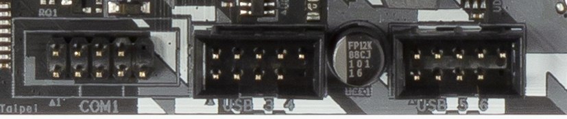 - 2 порта USB 3.1 Gen1 (3.0) реализованы через AMD B450 и представлены в виде внутреннего разъема (на 2 порта);