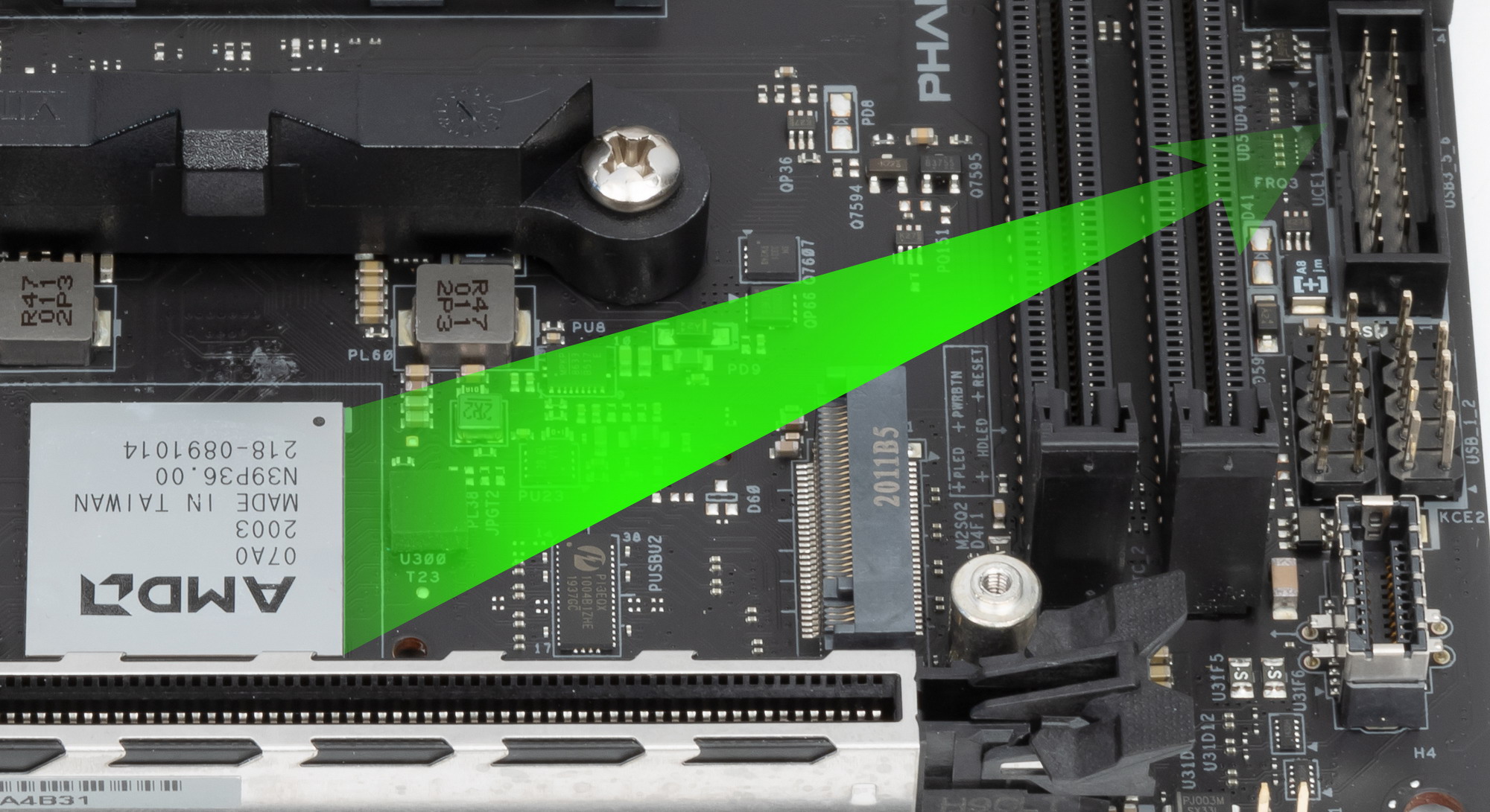 Слот M.2_1 имеет радиатор, который не связан с какими-то иными устройствами охлаждения на данной плате, однако под самим слотом имеется радиатор для чипсета B550.