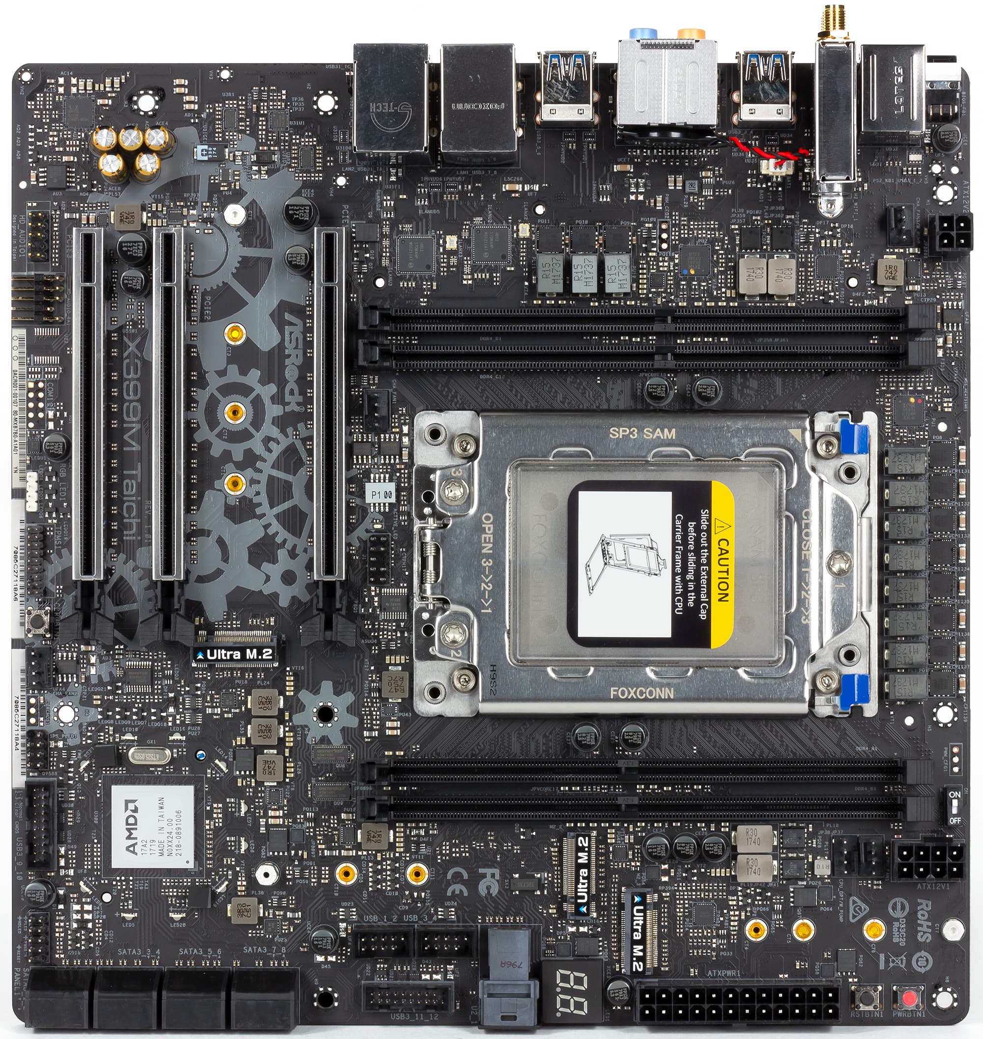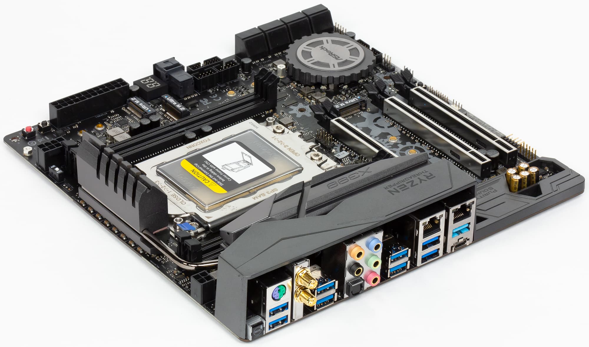 Для платформы TR4 существует ровно один подходящий чипсет — несмотря на появление второго поколения процессоров Ryzen Threadripper, замены для Х399 в ассортименте AMD пока нет. В принципе, не слишком она и нужна — по сути, это всего лишь перемаркированный Х370, однако основной его недостаток (поддержка только PCIe 2.0) для этих систем не существенен: у процессоров «свободно» целых 60 линий PCIe 3.0, которыми можно пользоваться.
