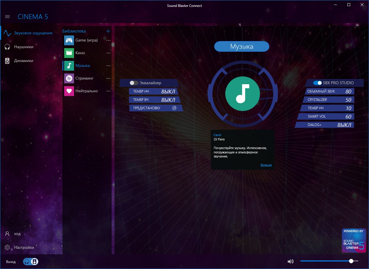 Теперь про звук. Я уже говорил, что у Z390 Phantom Gaming 9 используется аппаратно-программный комплекс Sound Blaster Cinema 5.