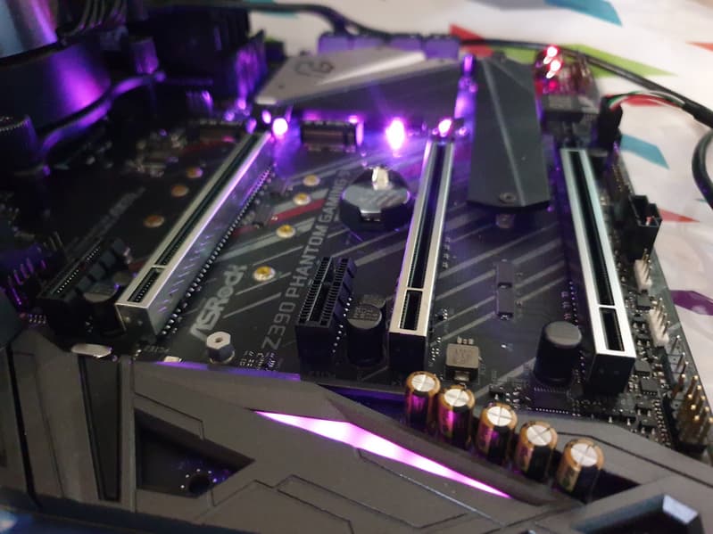 Чипсет имеет большой радиатор, однако уже не округлой формы с шестернями, как у Z390 Taichi, а многоугольной со стилистическими острыми вырезами в соответствии с дизайном Phantom Gaming.