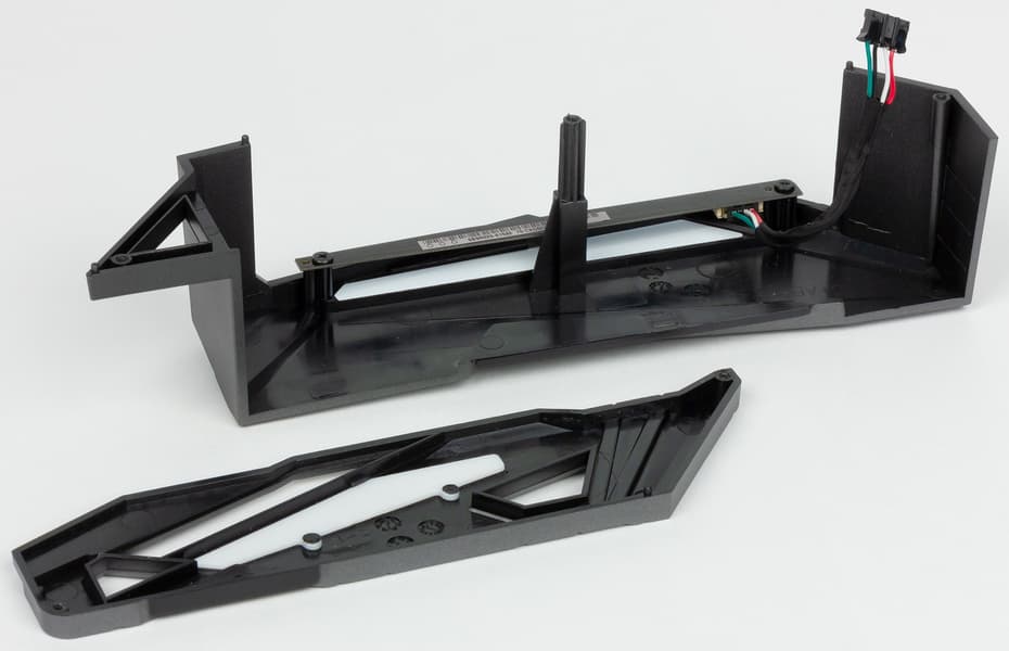 Над аудиоподсистемой и над блоком разъемов задней панели установлены пластиковые кожухи соответствующего дизайна и с подсветкой, радиаторов там нет.