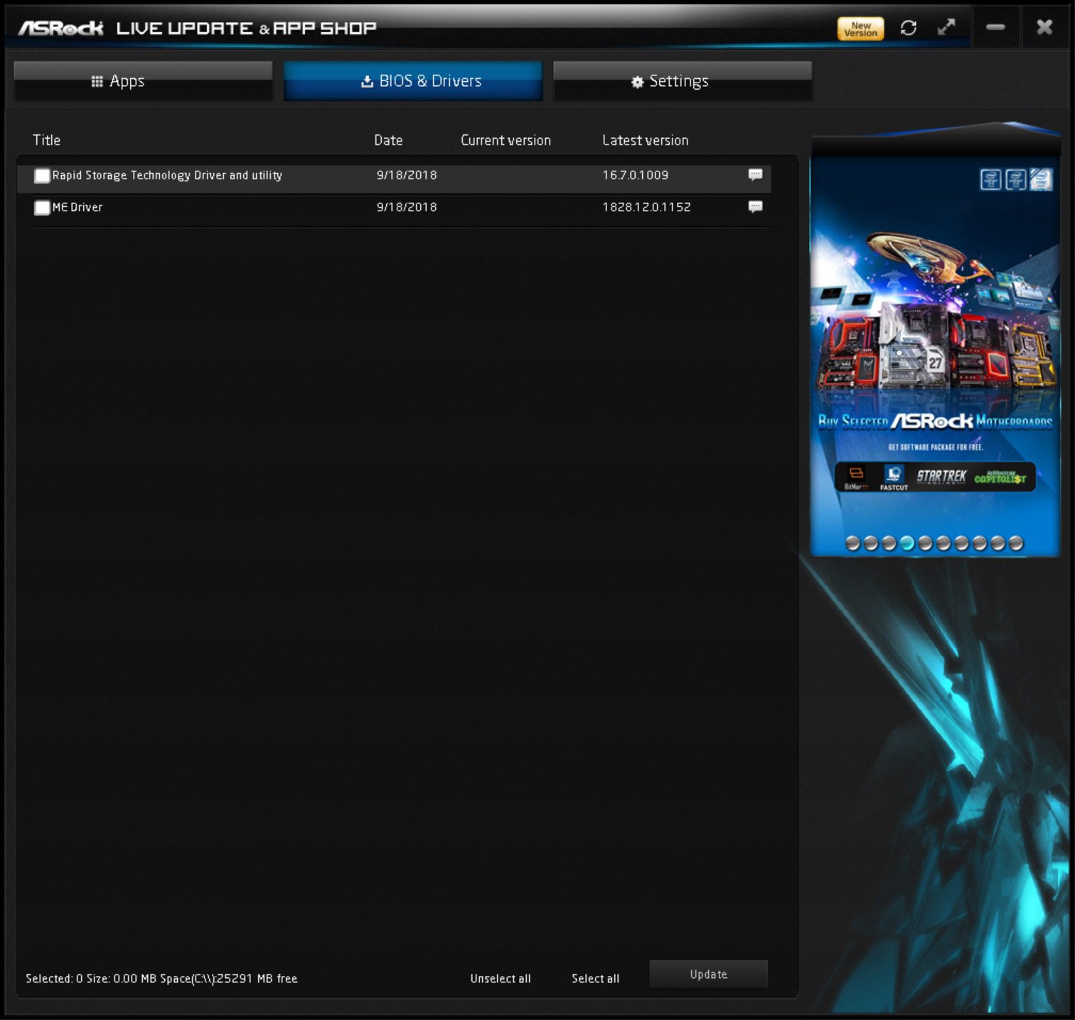 С помощью AppShop можно обновить все драйверы, установленные утилиты ASRock, а также прошивку BIOS материнской платы.