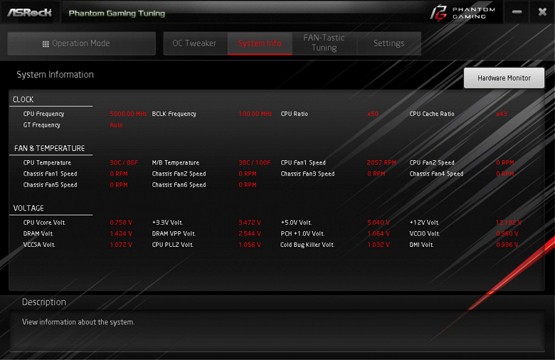Далее — основная программа для тех, кто хочет менять режим работы материнской платы, процессора, памяти. Надо сказать, что несмотря на схожесть Z390 Taichi и Z390 Phantom Gaming 9 в аппаратном плане, эти утилиты у них разные. Ранее рассмотренная мной в обзоре Z390 Taichi программа А-Tuning отказалась работать на Z390 Phantom Gaming 9, известив о несовместимости аппаратного обеспечения.