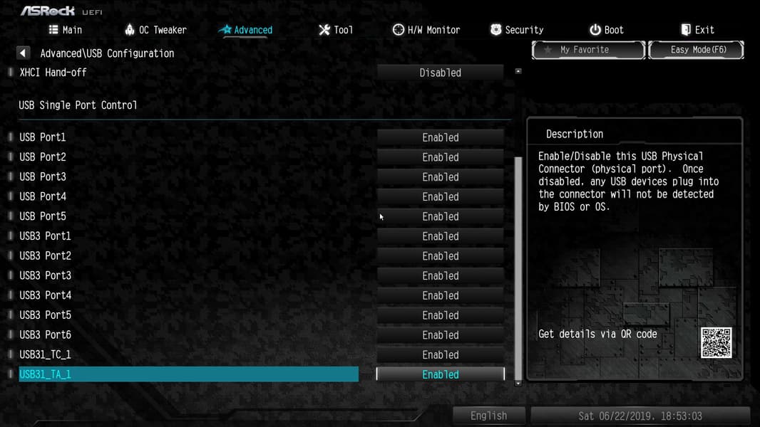 - 2 порта USB 3.1 Gen2 (самые быстрые на сегодня): все реализованы через Z390 и представлены на задней панели 1 портом Type-A (голубого цвета) 1 портом Type-C (оба оснащены функцией быстрой зарядки с помощью дополнительного контроллера ASM1543 от ASMedia;