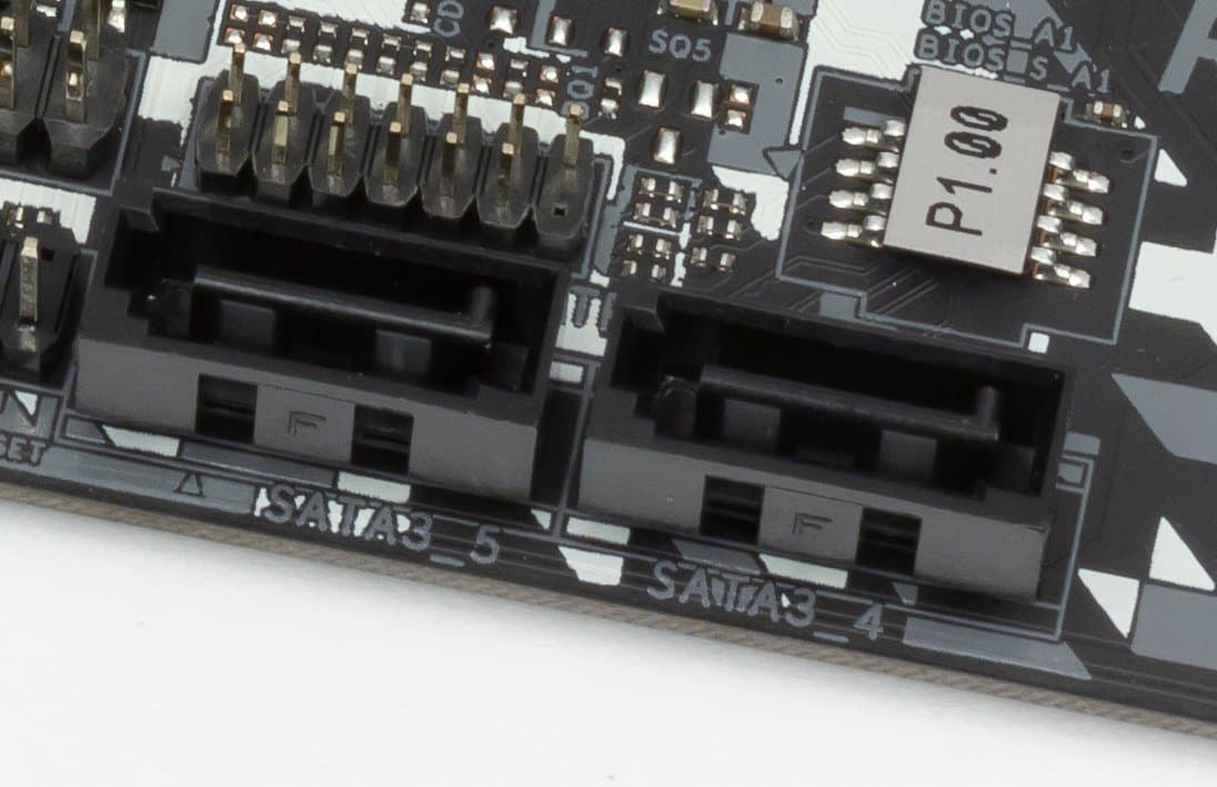 Портов ввода-вывода у чипсета на всех не хватает, поэтому традиционно приходится делить аппаратные ресурсы между устройствами. У данной платы слот M2_1 (верхний) в случае использования накопителя SATA делит линии с портом SATA3_1 (а если используется накопитель PCI-E, то — SATA3_0). Слот М2_2 делит линии только в одном случае: если используем накопитель PCI-E, то все SATA полноценно доступны, а если используем накопитель M.2 SATA, то вырубится SATA3_5.. То есть читатели поняли, что, например, если мы подключили жесткий диск или SSD к порту SATA3_5, то в М2_2 слот вставлять накопители с интерфейсом SATA бесполезно. Или если заняли слот M.2_1 модулем с интерфейсом PCI-E, то порт SATA3_0 будет банально отключен.