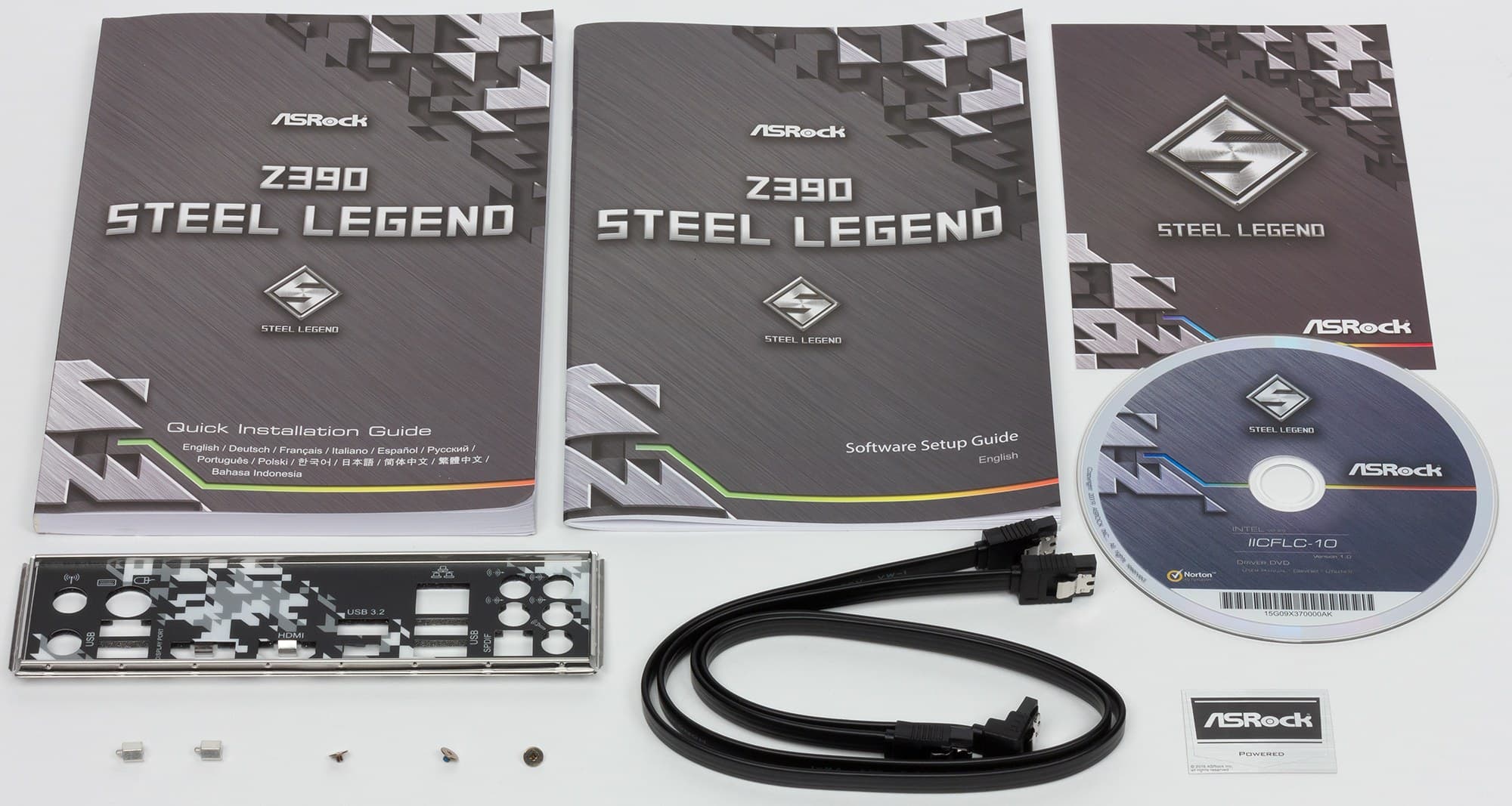 ASRock Z390 Steel Legend поставляется в большой, но обычной коробке без излишеств.