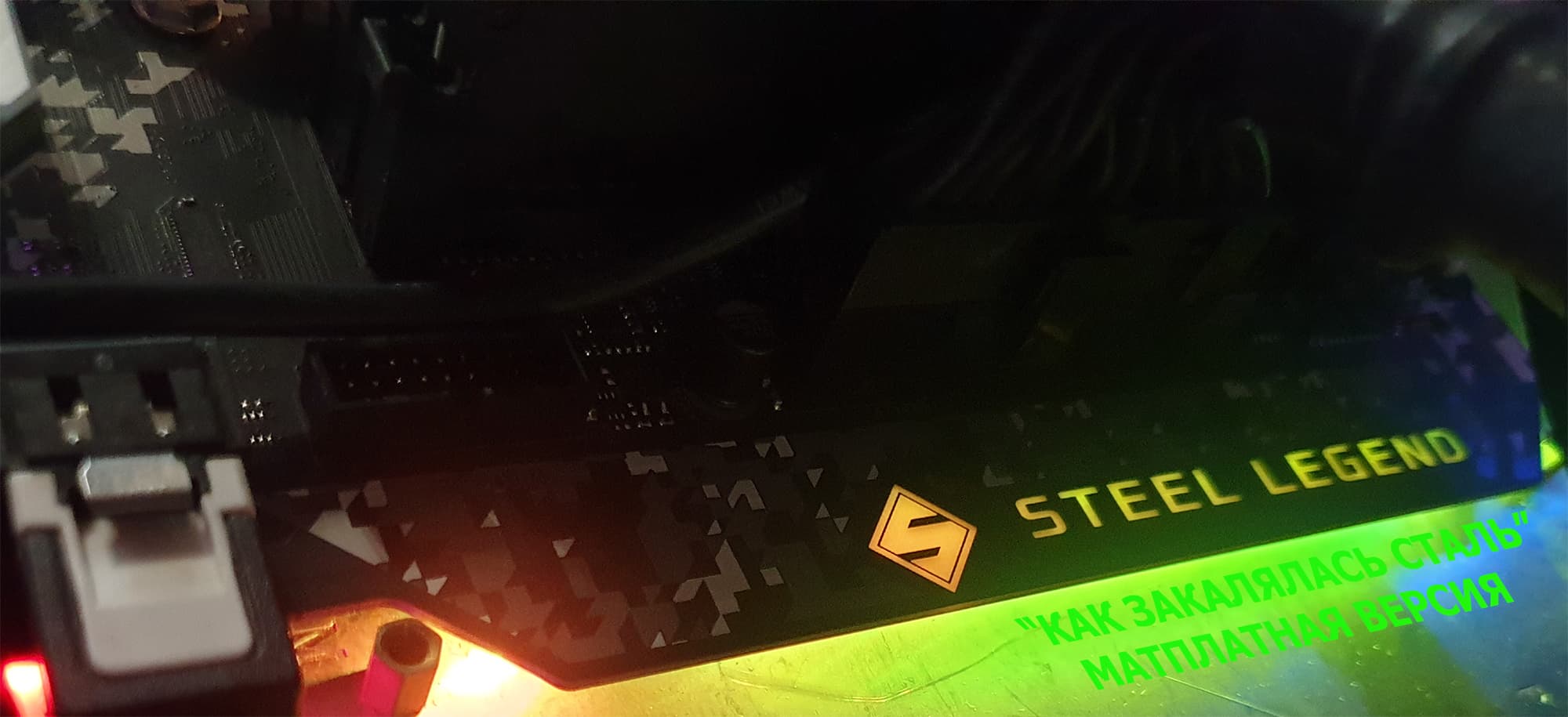 Обычно бывает: чем ниже уровнем материнская плата, тем скромнее подсветка. У топовых материнок мы привыкли видеть переливы светодиодов, рассыпанных по радиаторам, кожухам и даже оборотным сторонам PCB. Удивительно, что серия Steel Legend все же продолжает такую традицию. Пусть и без подсветки основного радиатора VRM.