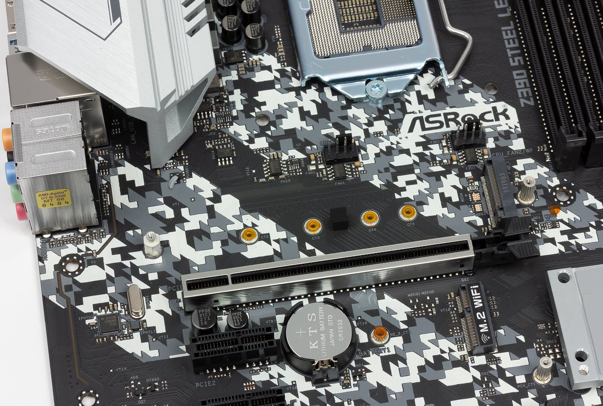 Как мы видим, по сравнению со своими топовыми аналогами из семейств Taichi и Phantom Gaming плата имеет весьма скудный набор портов, разъемов и т. п. Собственно, уже даже по этому признаку просматривается принадлежность к среднему сегменту.